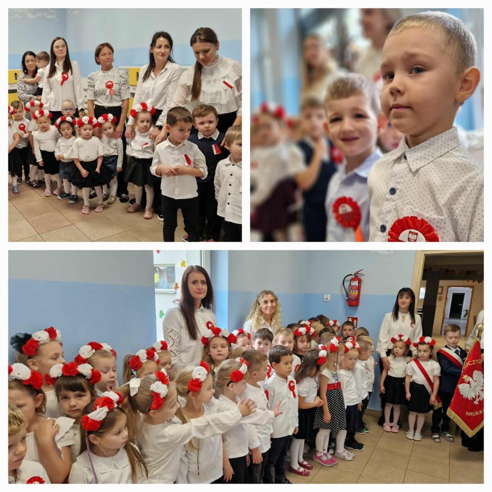 Dzieci z Zespołu Przedszkoli Miejskich nr 1 w Lipnie im. Czesława Janczarskiego z dumą uczciły 107. rocznicę odzyskania niepodległości przez Polskę. W tym wyjątkowym dniu budynek naszego przedszkola rozświetliły barwy biało-czerwone, symbolizujące miłość do Ojczyzny i narodową jedność. Przedszkolaki z wielkim zaangażowaniem i powagą odśpiewały hymn narodowy, włączając się tym samym w ogólnopolską akcję „Szkoła do hymnu” zorganizowaną przez Ministerstwo Edukacji Narodowej. W tym roku nasze przedszkole po raz pierwszy wzięło także udział w konkursie „Do hymnu” organizowanym przez Ministerstwo Sprawiedliwości, prezentując swoje patriotyczne postawy i piękne wykonanie Mazurka Dąbrowskiego. To był dzień pełen wzruszeń, dumy i radości – bo patriotyzmu uczymy się od najmłodszych lat
